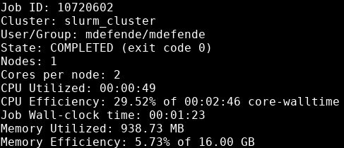 It's important to evaluate the efficiency of your job in terms of resource usage after it completes. Remember that Cheaha is a shared resource, so requesting resources that sit unused during a job prevents others from using those resources. As well, because each researcher has a maximum amount of resources they can use at a given time, having inefficient jobs can increase analysis runtime across many jobs, and increase queue wait times.