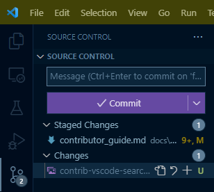VSCode facilitates staging and committing files.