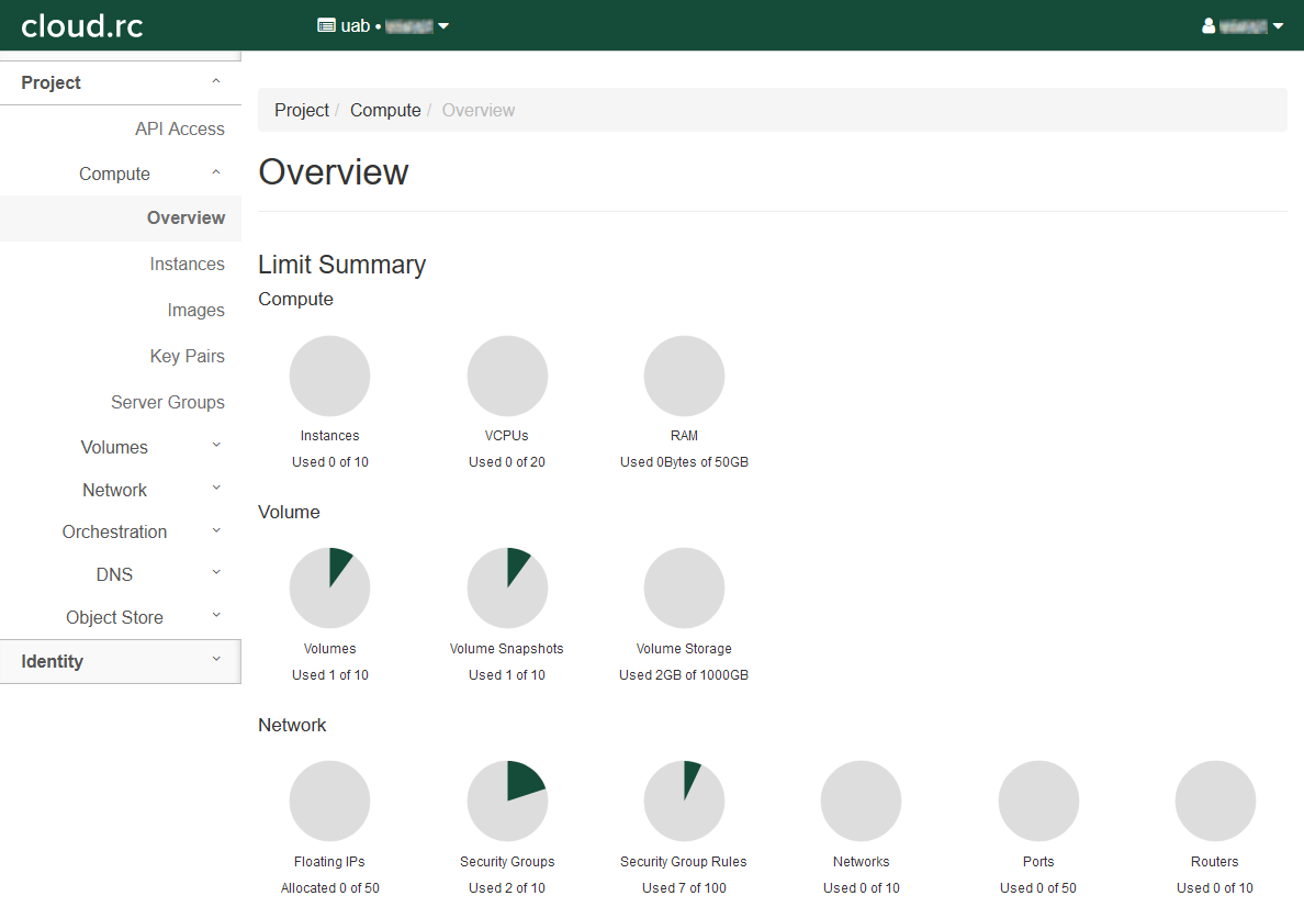 Resource quotas are set to ensure that every researcher has a fair share. Please be sure to free up resources when they are no longer needed by deleting instances and volumes.