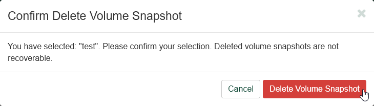 Click "Delete Volume Snapshot" again to delete the volume snapshot permanently.