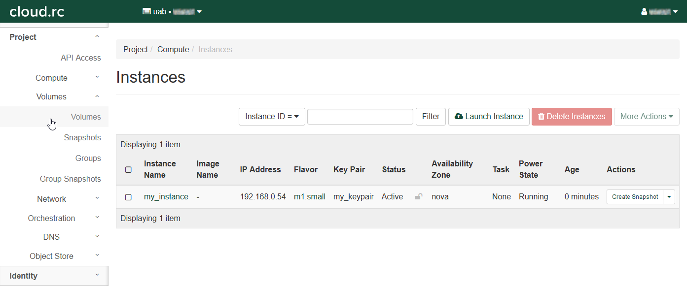 Open the instances table by clicking "Compute" in the left-hand navigation pane and clicking "Instances".