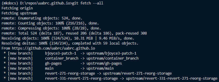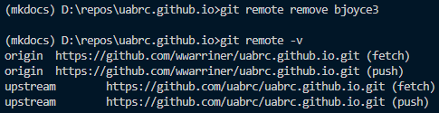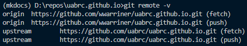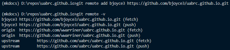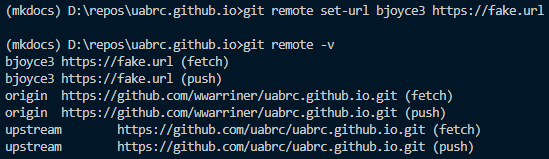 Best practice for the remote URL is to ensure it ends with .git. While the URL for this documentation's repository is https://github.com/uabrc/uabrc.github.io you should instead use https://github.com/uabrc/uabrc.github.io.git when cloning.
