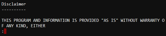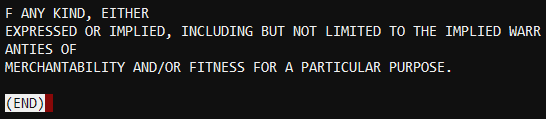 Below are two images showing what less looks like. Note the last line of each image, which indicates you are using the less environment. The first image is an example where there is more text below the visible text. The second image is an example at the bottom of the text.