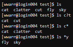 *matches any string.c*matchescat,cut, andclatter.*.pngmatches allpngfiles. - Double star