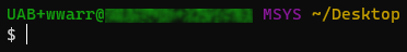 Commands are entered at the prompt. The prompt can take many forms, typically something like one of the following. Common features are: (1) a prompt character, often the dollar sign $; (2) a caret to indicate where characters will be inserted when you type, typically a blinking underscore _ or rectangle; (3) color to enhance meaning of various components.