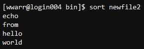 Lines in the input file are returned in sorted order. The results are displayed in stdout. To write the sorted result to a file use sort <file-path> > <new-file-path>.